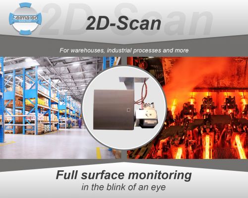 With our 2D-Scan, you can get the most out of the quality of an MP Line Scanner. Equipped with a tilt unit, this device is able to scan full areas with a single pivot movement (180° pivot angle x 90° scan angle), allowing you to secure warehouses, wastebunkers or manufacturing processes.