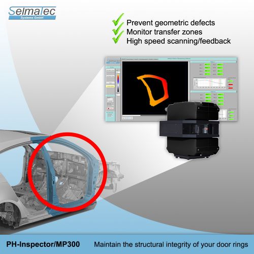 The Selmatec PH-Inspector provides all the information you need in an intuitive and user friendly interface to maintain the structural integrity of the door ring by accurately monitoring the temperature in zones, transition zones as well as on patches to ensure the success of the desired heat treatment in volume production. System integration with the latest line scanner, the MP300, makes monitoring possible even at high transfer speeds, thanks to its 300Hz measurement frequency.