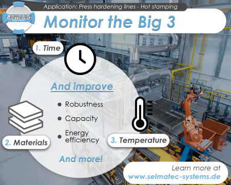 At Selmatec, we understand the evolving demands of press hardening and provide optimized solutions compliant with CQI-9. With our robust inline temperature monitoring solutions, you can rest assured your plant will be empowered to achieve stable product quality, enhance efficiency, and maximize your production lines' potential.