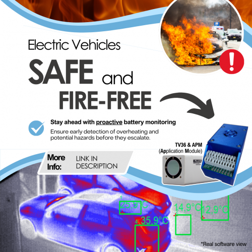 The APM's optional integration with industrial automation systems via Digital I/O, OPC UA, or ProfiNet, enhances its adaptability to diverse industrial environments, ensuring compatibility and interoperability with existing infrastructure. Feel free to use it as a stand-alone or as part of a wider network of solutions for smarter, safer and more efficient operations. Whether you’re addressing the challenges of EV battery monitoring and production, or managing critical systems in other fields, you can trust the TV36 IR Camera and APM combo to dramatically reduce risks.
