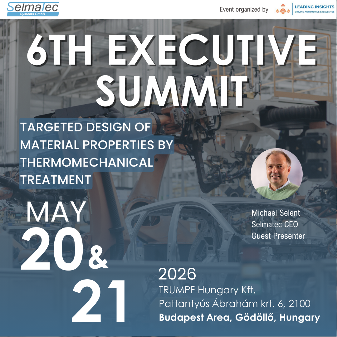 We’re excited to share that Selmatec will be participating in the 6th Executive Summit – Targeted Design of Material Properties by Thermomechanical Treatment, organized by Leading Insights and taking place in Budapest.