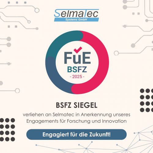 Wir freuen uns, bekannt geben zu dürfen, dass Selmatec GmbH für ihr Engagement in Forschung und Innovation mit dem BSFZ-Siegel ausgezeichnet wurde. Diese Auszeichnung folgt auf die formelle Genehmigung unseres Forschungsantrags für ein neues Entwicklungsprojekt und unterstreicht unser kontinuierliches Streben nach technologischer Exzellenz.