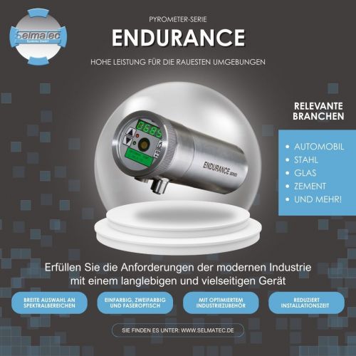 Die Endurance-Serie wurde von Experten für Experten entwickelt und bietet ein komplettes Sortiment an Hochleistungspyrometern, das einfarbige, zweifarbige und faseroptische Modelle umfasst. Dies ist der Schlüssel zu einer Vielzahl von Situationen, insbesondere bei großer Hitze, beengten Platzverhältnissen und/oder dynamischem Emissionsvermögen (z. B. bei glühenden Metallen oder sich bewegenden Zielen). Mit einem Temperaturbereich von 50 bis 3200 °C, einer Messfleckgröße von nur 0,6 mm und einer Ansprechzeit von nur 2 ms ist Endurance für Umgebungen ausgelegt, in denen es keinen Raum für Fehler gibt. Dank der Unterstützung von Ethernet, Profinet, EtherNet/IP und RS485 sowie gleichzeitiger analoger und digitaler Ausgänge lässt sich das Endurance-Pyrometer problemlos in moderne Steuerungssysteme einbinden.