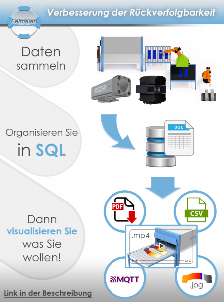Mit den erfassten Ausrichtungs- und Temperaturinformationen fügt die Selmatec-Lösung eine zusätzliche Detailebene hinzu, indem sie auch Ofen-/Pressdaten integriert, um einen einzigartigen Fingerabdruck der hergestellten Komponenten zu erstellen. Diese kombinierten Daten werden automatisch in einer SQL-Datenbank organisiert, die dann in verschiedenen Formen visualisiert werden kann: