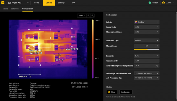 Nie war es einfacher, Wärmebilder zu erfassen. Mit der TV30 können Sie Ihr Wärmebildsystem einrichten, ohne dabei ständig auf die Verbindung zu einem separaten Computer angewiesen zu sein. Die TV30 ist ein Edge-basiertes Gerät, das heißt, Sie können über einen Web-Browser mehrere AOIs überwachen und auf die integrierten Analysefunktionen der fest installierten Wärmebildkamera zugreifen.